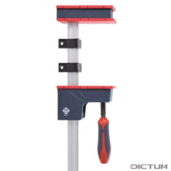 Il peut être utilisé d’une seule main à l’aide d’une poignée de pistolet avec fonction de cliquet. Pour fixer solidement des rails de guidage ainsi que pour le serrage sur un plan de travail avec des rails de guidage à rainure en T. Convient pour les rails de guidage avec rainures de 12 x 8 mm.